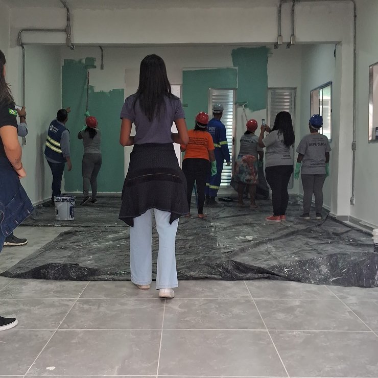 A ação também mobilizou moradoras da comunidade, participantes do projeto “Mãos à Obra Já – Qualifica Mulher”, que contribuíram com a pintura do espaço, fortalecendo o vínculo social e o protagonismo feminino local.
